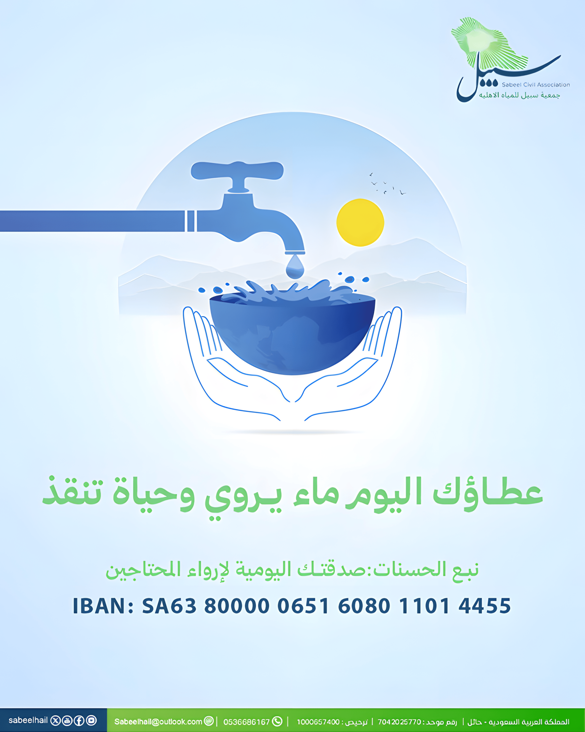 ✔️ تبرع بأي مبلغ ليساهم في توفير مياه صالحة للشرب.
